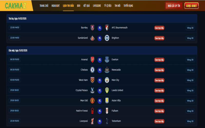 Thay vì đóng vai trò như một bảng thông tin tĩnh, lịch thi đấu trên Cakhia Link được thiết kế để liên kết trực tiếp với trải nghiệm xem bóng đá.