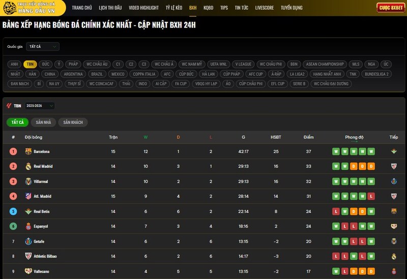 Một yếu tố quan trọng khác khiến tôi và anh em gắn bó với kênh xem bong da Socolive là khả năng cập nhật bảng xếp hạng bóng đá Tây Ban Nha tức thời. Từ Real Madrid, Barcelona cho đến các CLB nhỏ hơn, mọi thông tin về thứ hạng, điểm số, số trận thắng – thua đều được hiển thị rõ ràng, giúp tôi theo sát diễn biến mùa giải mà không cần mở nhiều trang web khác.