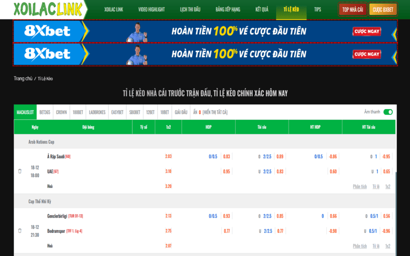 Hệ thống kèo được cập nhật liên tục từ các nhà cái uy tín, giúp người chơi so sánh nhanh sự biến động tỷ lệ trước giờ bóng lăn. Ngoài các kèo chính như Handicap, Tài Xỉu hay 1×2, nền tảng còn cung cấp đầy đủ những kèo phụ dành cho người chơi thích đào sâu, từ kèo tỷ số, thẻ phạt cho tới các tình huống đặc biệt trong trận.