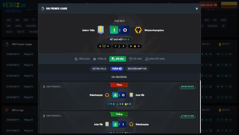 Một điểm mà tôi phải dành lời khen cho Vebo TV là mức độ chi tiết trong từng thống kê. Không chỉ dừng ở tỷ số hay phong độ, nền tảng còn cho phép anh em “mổ xẻ” trận đấu ở từng góc độ nhỏ nhất.