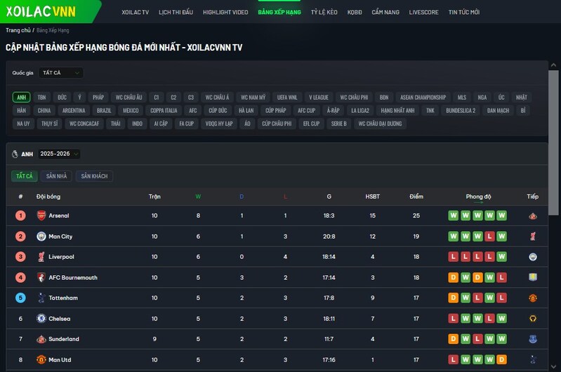 Không chỉ phục vụ khán giả xem bóng đá miễn phí, Xoi Lac Link còn hỗ trợ tuyệt vời cho fan hâm mộ với bảng xếp hạng cập nhật liên tục như bảng xếp hạng bóng đá anh. Nếu bạn là người đam mê bóng đá thực sự, Xoi Lac Link chắc chắn là nền tảng mà bạn “nên thêm vào mục yêu thích ngay hôm nay”!